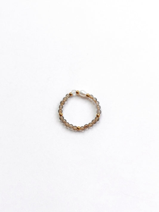 Pierścionek Sol z kwarcu dymnego, kryształu górskiego i pereł