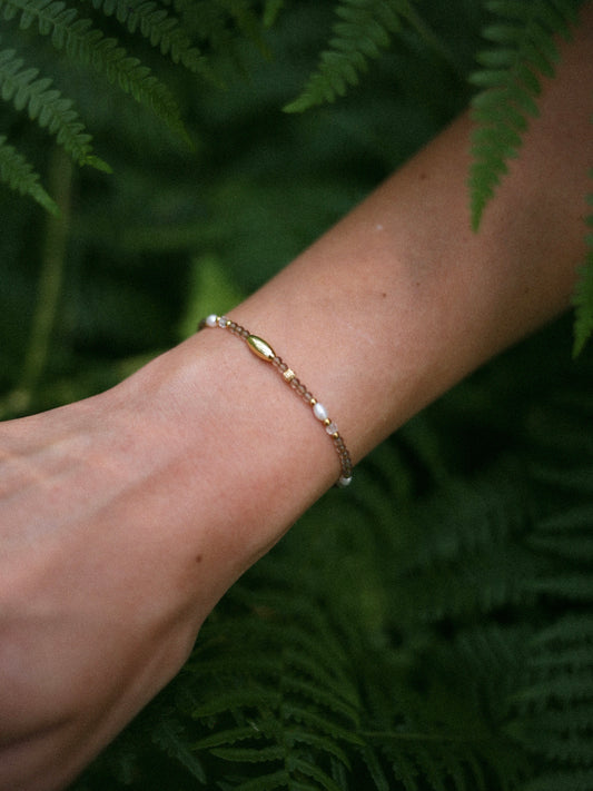 Bransoletka Sol z kwarcu dymnego, kryształu górskiego i pereł