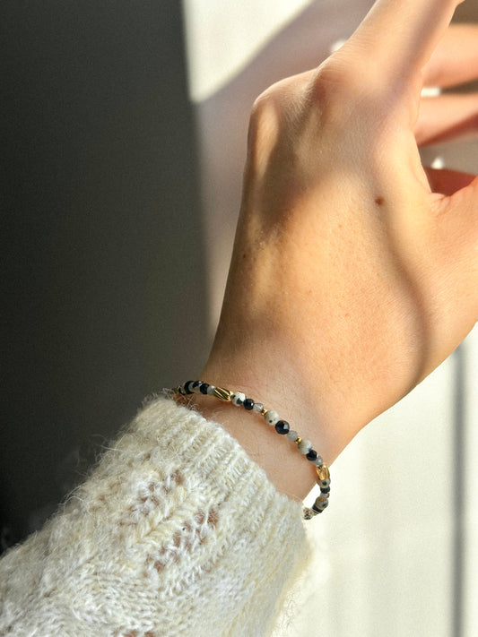 Bransoletka Gris z turmalinu, jaspisu dalmatyńskiego i labradorytu