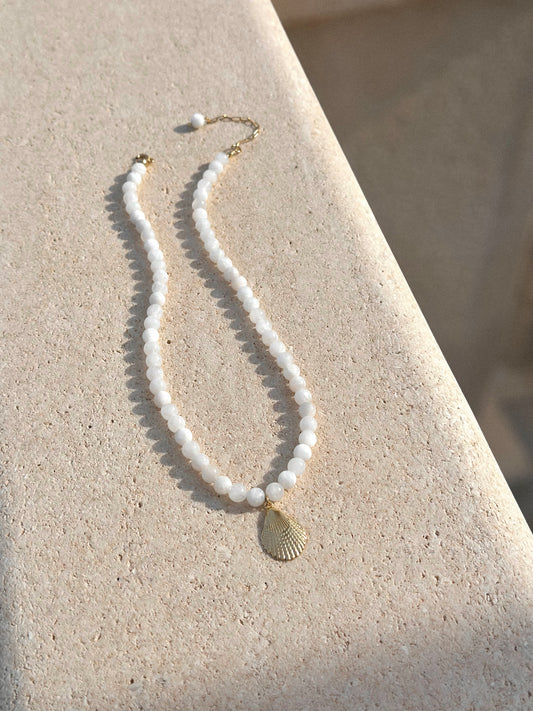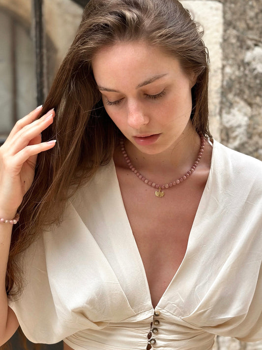 Choker Chaleur z rodonitu, opalu, kamienia księżycowego i pereł
