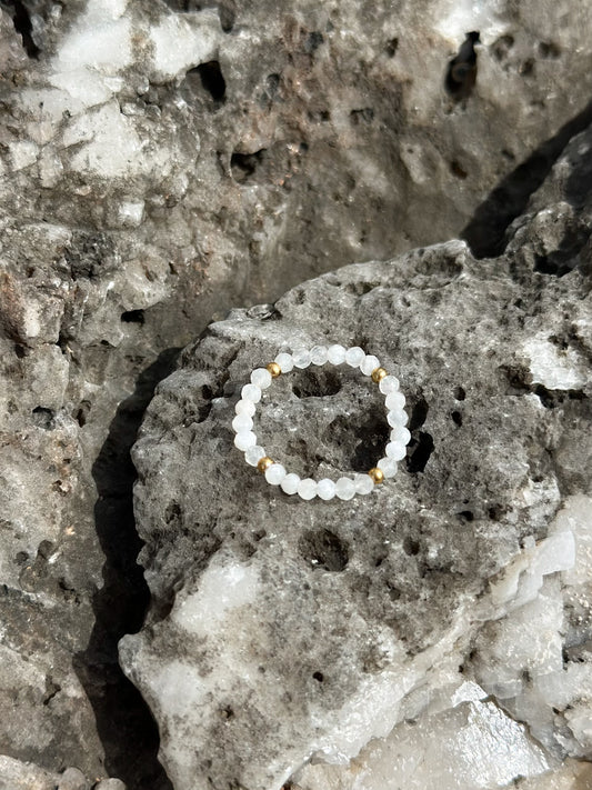 Pierścionek Gemme z jadeitu, opalu, kamienia księżycowego i pereł