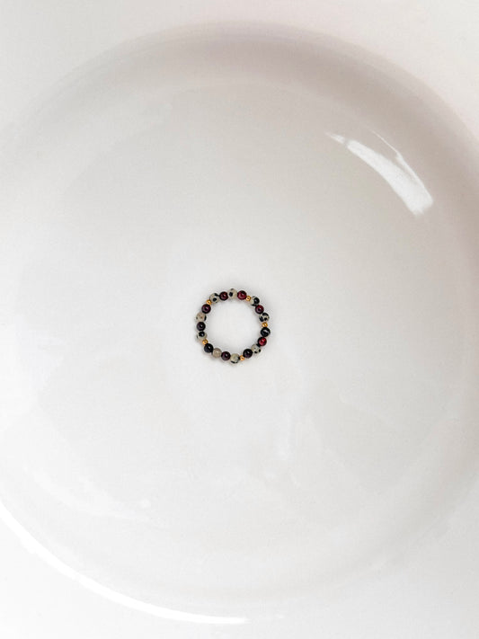 Pierścionek Chaud z granatu i jaspisu dalmatyńskiego