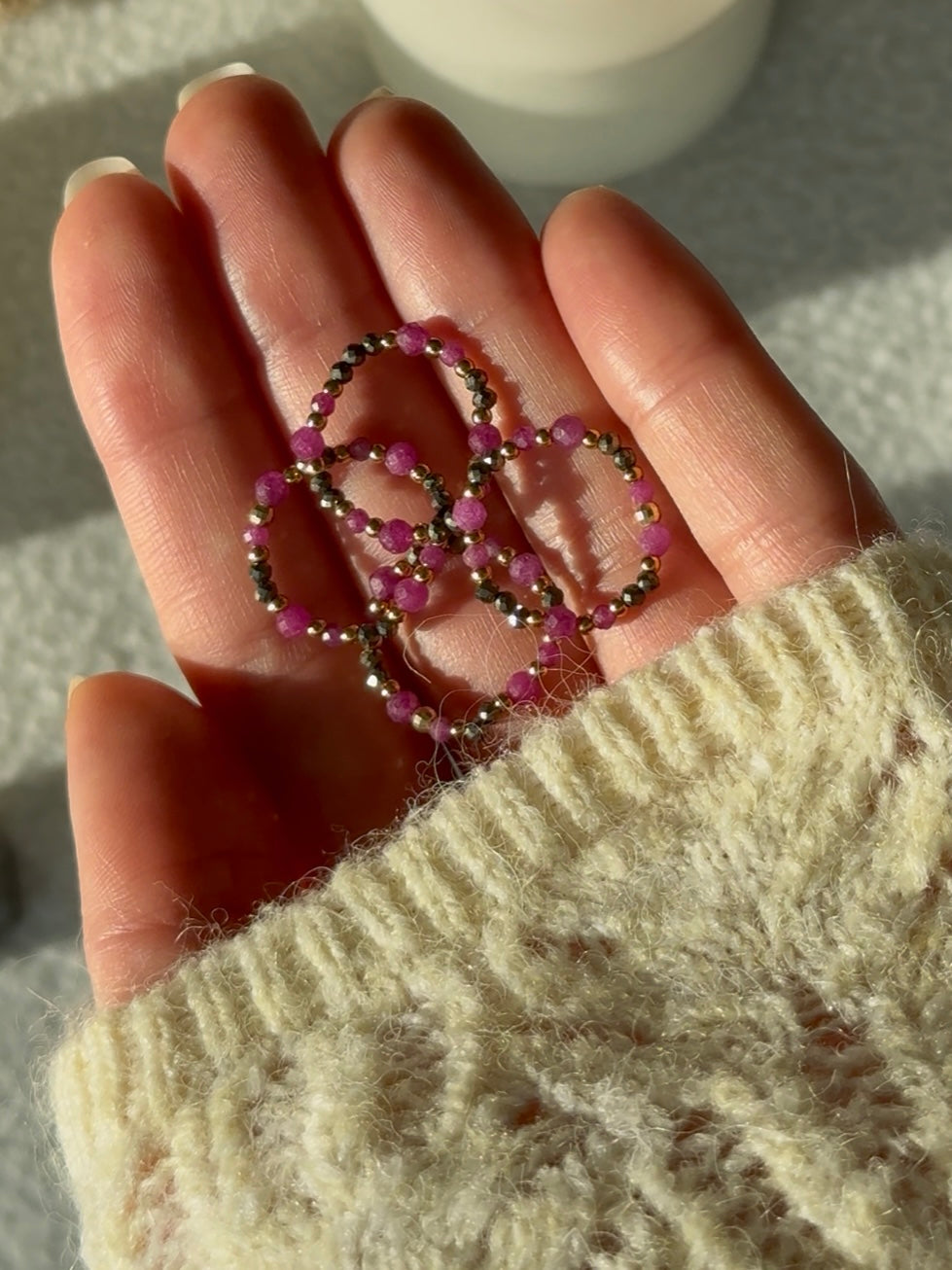 Pierścionek Eclair wykonany został z naturalnych kamieni oraz pozłacanych koralików.
